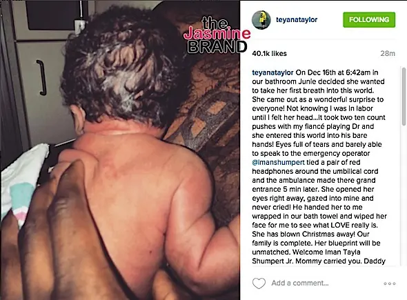 Teyana Taylor & Iman Shumpert Deliver Their Baby Girl At Home In Their Bathroom! [Photo]