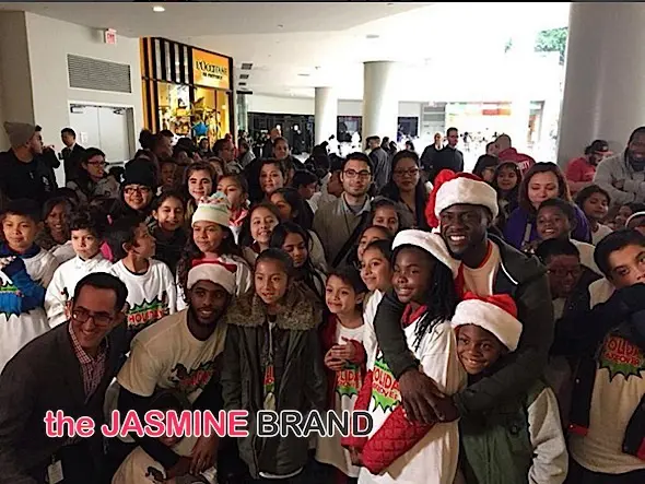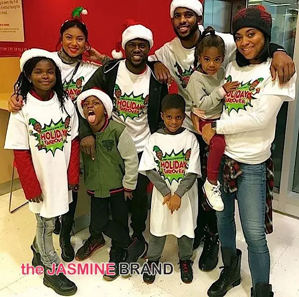 The giving doesn’t stop for some of your fav A-listers. This week, self proclaimed rock star, Kevin Hart and NBA’s Chris Paul brought holiday cheer to some deserving kids in LA. Hart and Paul brought their #chrisandkevinholidaytakeover to Fox Hills Mall’s Target, giving over 900 eager children toys, compliments of Hasbro. Hart’s fiancee and children were present, along with Paul’s wife and kids. Black-Ish star Marcus Scribner also joined in on the fun. See the flix and footage!