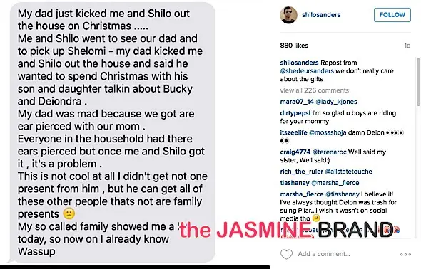 It’s safe to say that Deion Sanders may not receive the ‘Father of the Year‘ award. According to his two teenage sons 13-year-old Shedeur and 15-year-old Shilo, on Christmas they were kicked out by the NFL Hall of Famer. Why? Because they got their ears pierced and we’re guessing it was without his permission. They wrote about this on social media. Check it out below.