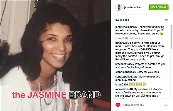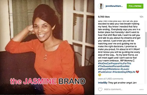 Very sad news for reality star, Jennifer Williams. On Monday, the former Basketball Wives Miami cast member revealed that her mother had lost her battle with cancer and had passed. Williams posted several Instagram messages, openly expressing her sadness. In one post, she writes: