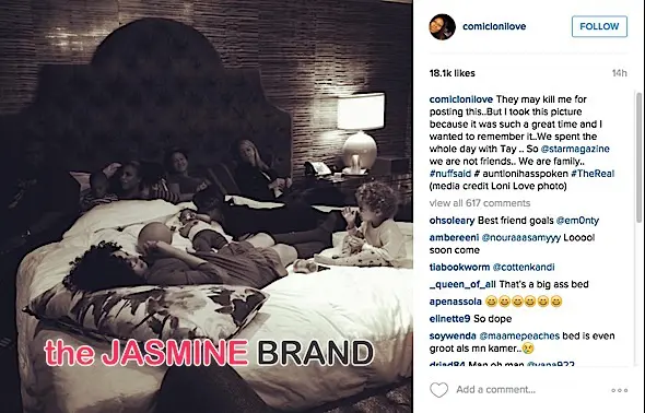 They may kill me for posting this..But I took this picture because it was such a great time and I wanted to remember it..We spent the whole day with Tay .. So @starmagazinewe are not friends.. We are family..#nuffsaid # auntlonihasspoken #TheReal(media credit Loni Love photo)
