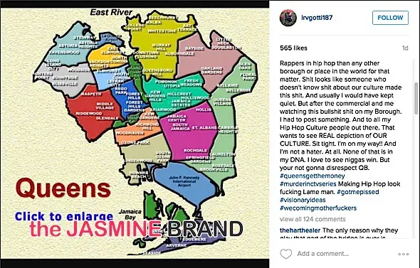 Shit looks like someone who doesn’t know shit about our culture made this shit. And usually I would have kept quiet. But after the commercial and me watching this bullshit shit on my Borough. I had to post something. And to all my Hip Hop Culture people out there. That wants to see REAL depiction of OUR CULTURE. Sit tight. I’m on my way!! And I’m not a hater. At all. None of that is in my DNA. I love to see niggas win. But your not gonna disrespect QB. #queensgetthemoney #murderinctvseries Making Hip Hop look fucking Lame man. #gotmepissed #visionaryideas #wecomingmotherfuckers