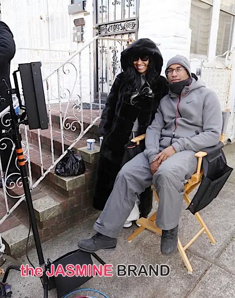 Nicki Minaj hangs out with the director (Tim Story) and members of the cast of her new series, Nicki.