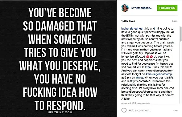 Benzino and his ex fiancee, Althea Heart, have taken to social media to express their displeasure with one another. As you know, the pair, who star on We TV’s Marriage Bootcamp, share a newborn son. And unfortunately, things have taken a turn for the worse in their relationship. Today, the two have taken to Instagram airing out their grievances. Check out their back and forth below.
