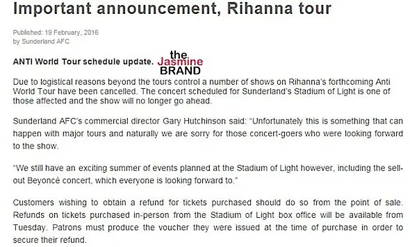 Rihanna has postponed her upcoming Anti world tour that was scheduled to kick off this month. Initially, her first show was scheduled for February 26th in San Diego. The tour will now kick off in Jacksonville on March 12th.