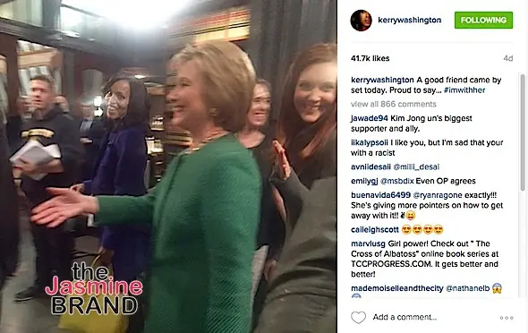 She stopped by and hung out for a little. It was a conversation. Kerry (Washington) poked her head in and said, ‘Do you think it would be okay if Hillary stopped by?’ And I was like, ‘Of course it’s okay if Hillary stops by.’ We have a really great relationship and she’s a really wonderful person.