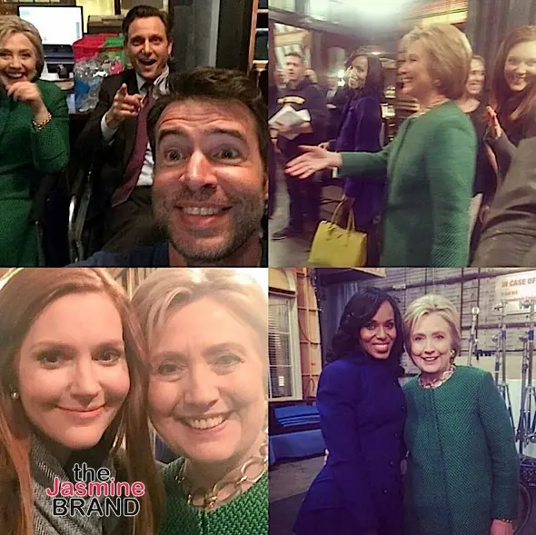 Cast members took to social media to post photos of the former first lady, senator, and Secretary of State, including Kerry Washington, Tony Goldwyn and Darby Stanchfield.