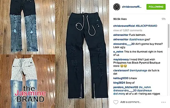 How much are YOU willing to pay for fashion? Chris Brown is catching a bit of heat by some of his fans. Over the weekend, Brown showed off some of the new items from his Black Pyramid line. A few of the pieces, the shirts in particular, retail from $70 — 90, which is a bit on the pricey end for some of his fans. Anywho, a few fans left comments about them being too expensive and Brown posted the following video in response.