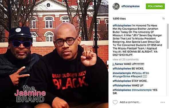 On Monday, Lee posted a photo with Jonathan Butler at the University Of Missouri. He was one of the students who led the hunger strike that led to Mizzou’s President resigning.