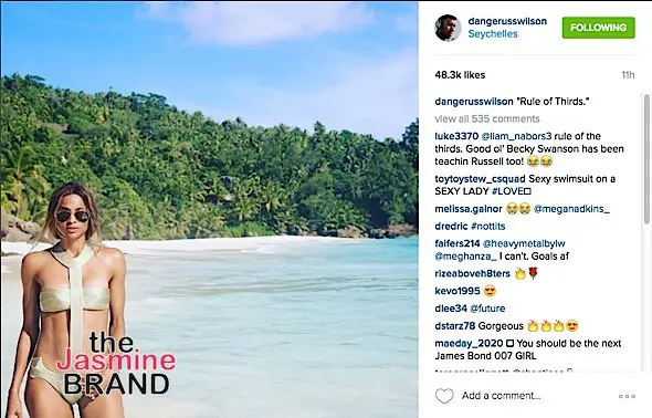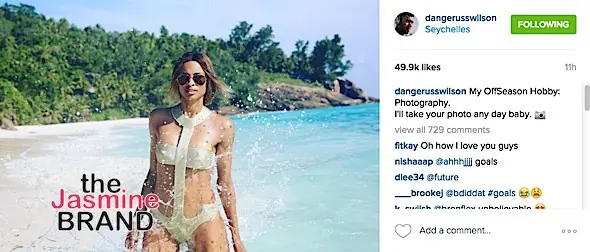 Apparently, Russell loves to play photographer, as they both posted some beach swimsuit shots of Cici as they continue their romantic getaway in Seychelles.