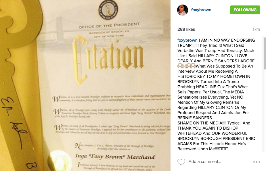 (UPDATE) Foxy Brown Denies Endorsing Donald Trump
