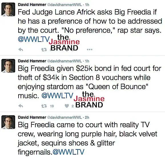 Today, reality TV star Big Freedia (real name Freddie Ross Jr.) appeared in federal court to plead guilty to stealing Section 8 vouchers. According to Tweets from WWL reporter David Hammer, Freedia was in court with reality TV cameras, presumably for her hit show Big Freedia: Queen of Bounce. Reportedly, she was given $25k bond for the theft. Her sentencing will take place on June 16th.