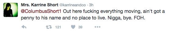 Karrine posted a video and a few tweets on social media, hinting that Columbus had cheated.