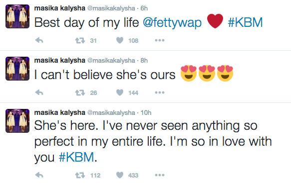 Congratulations to reality star Masika Kalysha and rapper Fetty Wap. On Wednesday, the former Love & Hip Hop Hollywood reality star shared on Twitter that she had welcomed a daughter stating,