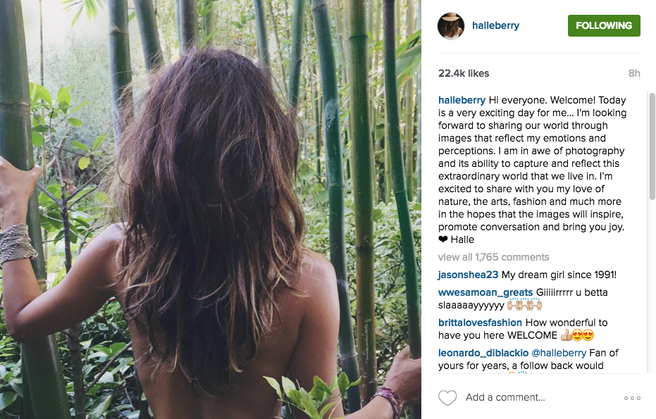 Halle Berry has been bitten by the social media bug, joining both Instagram and Twitter. On Tuesday, she shared her first Tweet and Instagram post. On Instagram she shared an image of her in a tropical environment, with the caption: