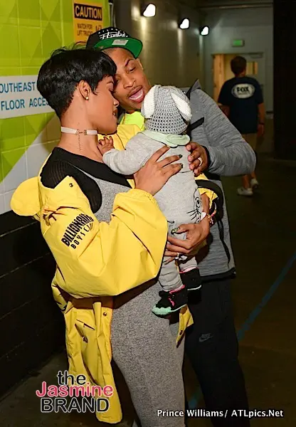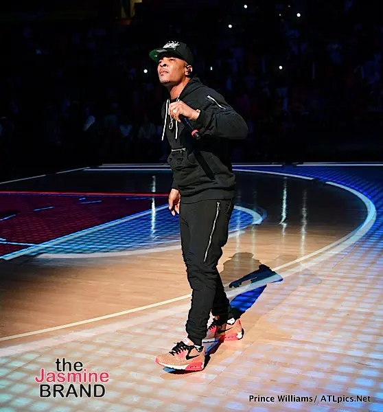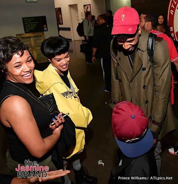 Last Night, a few of your favorites were spotted at the Cleveland Cavs VS Atlanta Hawks game in Atlanta. Celebs spotted included: rapper T.I. (who also performed), Teyana Taylor and her adorable daughter (cheered on her fiance Iman Shumpert), rapper Future, producer/singer The Dream, reality star Marlo Hampton and a few players in the locker room. Check out the flix!