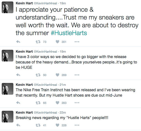 Kevin Hart’s ‘Hustle Harts’ sneakers will be released in June. The comedic rockstar shared the news on Twitter. See his announcement below.