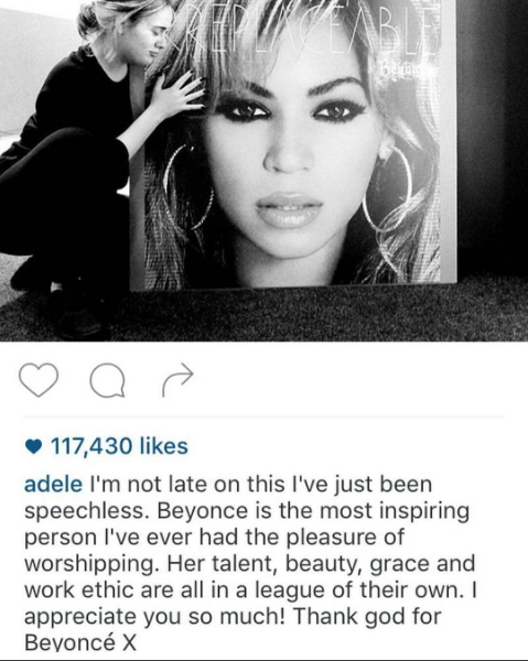 And in totally unrelated news, Adele has officially joined the Beyhive. See her Instagram post below.