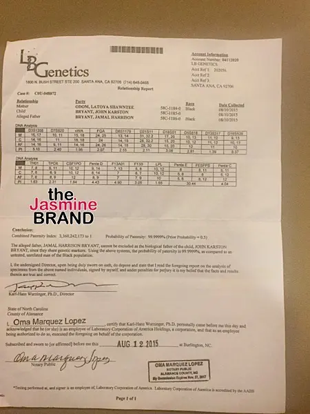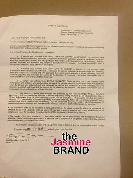 The woman alleges that Bryant wanted her to abort the baby, but she did not want to. She states that after having a DNA test, he agreed to pay child support.