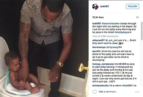 Real Housewives of Atlanta’s Todd Tucker is sorta-kinda potty training he and his wife’s son, Ace, already! Todd and his wife Kandi Burruss welcomed a son in January and he’s already in the beginning phases of being potty trained. Todd shared a photo of Ace on the toilet, with the caption: