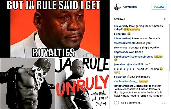 And in other news, Ja Rule was dragged this week, for thinking that those popular memes of Michael Jordan crying actually make the former NBA player money. He tweeted and later deleted,