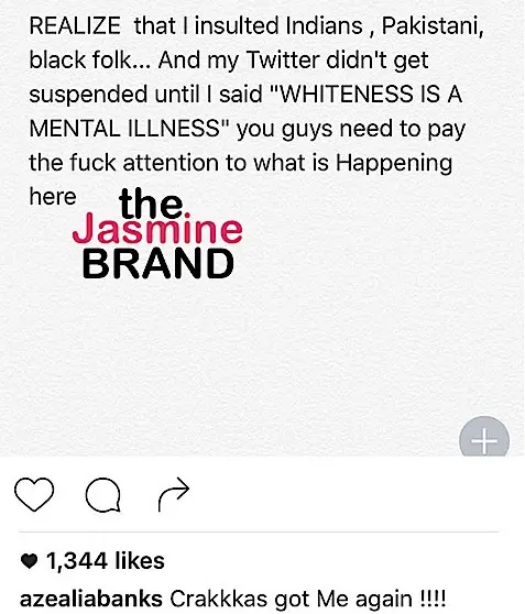 Azealia Banks has been suspended from Twitter. As of Thursday, the controversial rapper’s Twitter account had been suspended. Rumor has it, her offensive comments about a few minority populations, coupled with whites, may have been the reason it. Banks is still on Instagram and posted this on why she was removed from the popular social media site.