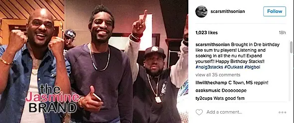 Rapper/actor Andre 3000 doesn’t appear to have aged one single day since Outkast. This week, he turned 41 and spent a special moment with Big Boi in the studio.