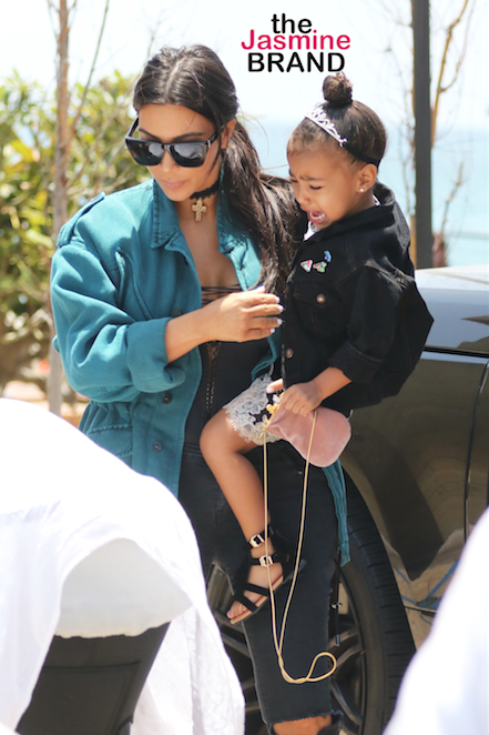 Kim Kardashian holds a crying North West, at Nobu in Malibu.