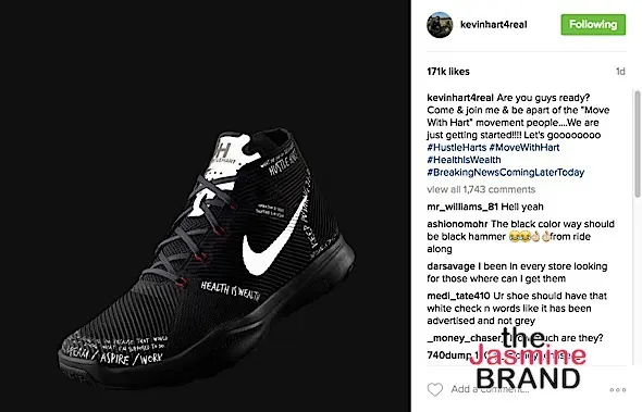 Kevin Hart’s sneakers are almost here! This week, he shared a photo of his sneaker. The black high top sneaker has motivational words like ‘dream’, ‘aspire’, ‘work’, ‘health is wealth’ etched on them.