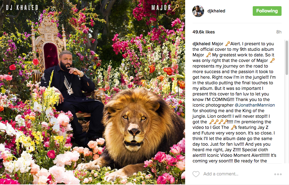 Major ? Alert. I present to you the official cover to my 9th studio album Major ?. My greatest work to date. So it was only right that the cover of Major ? represents my journey on the road to more success and the passion it took to get here. Right now I’m in the jungle!!! I’m in the studio putting the final touches to my album. But it was so important I present this cover to fan luv to let you know I’M COMING!!!! Thank you to the iconic photographer @JonathanMannion for shooting me and the King of the jungle. Lion order!!! I will never stop!!! I got the ????!!!!!! I’m premiering the video to I Got The ?s featuring Jay Z and Future very very soon. It’s so close. I think I’ll let the album date go the same day too. Just for fan luv!!!! And yes you heard me right, Jay Z!!!!! Special cloth alert!!!! Iconic Video Moment Alert!!!!!!!! It’s coming very soon!!!! Be ready for the most powerful music and iconic artists all on Major ?. @wethebestmusic @epicrecords @rocnation #MAJOR? THE ALBUM FULL OF PASSION PAIN AND SUCCESS AND BLESSINGS AND MORE WINS!! GOD IS THE GREATEST! ????