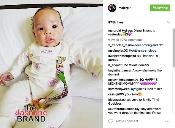 And Heiress Diana is one stylish baby. Over the weekend, the adorable daughter of Tameka ‘Tiny’ Harris and T.I. turned 3 months old, sporting Young Versace.
