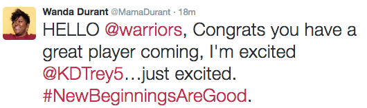 P.S. See this cute tweet from Kevin’s mother, Wanda Durant: