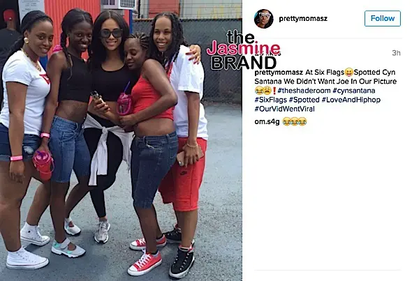 And here’s Cyn, who was last linked to reality star Erica Mena, posing with fans at the amusement park.