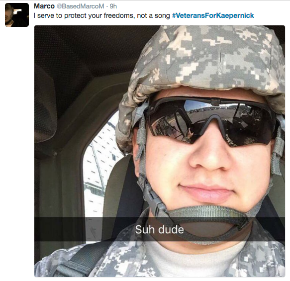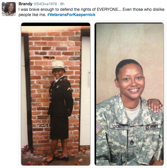 For the past few days, San Francisco 49ers quarterback Colin Kaepernick has taken heat for refusing to stand during the national anthem. As the controversy grew, members of the military and veterans took to social media using the hashtag #VeteransForKaepernick, which started trending on Tuesday.