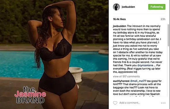 This week the pair confirmed their relationship on Instagram, Cyn, who use to date reality star Erica Mena, planned a very sweet birthday celebration for the rapper. Prior to his special day, Joe posted this message about Cyn.