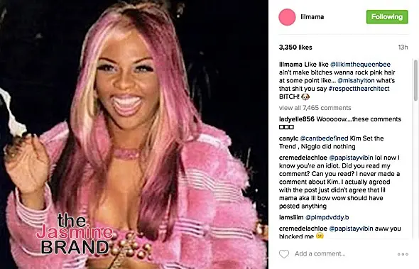 Lil Mama’s latest Instagram post has us speculating that she is calling out rapper Nicki Minaj. On Monday, she posted an Instagram photo of a vintage Lil Kim wearing pink hair with the caption:
