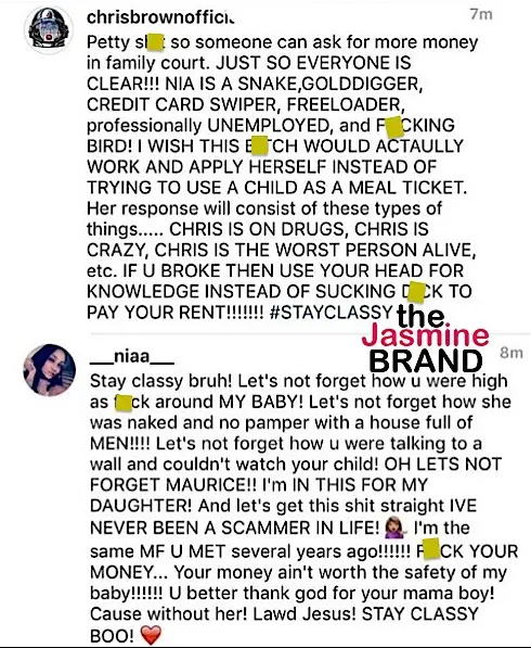 Later, both Nia and Chris exchanged insults on social media. Chris calls Nia an unemployed gold-digger, while Nia accuses the singer of abusing drugs and having her daughter in an unsafe environment. See their comments below.