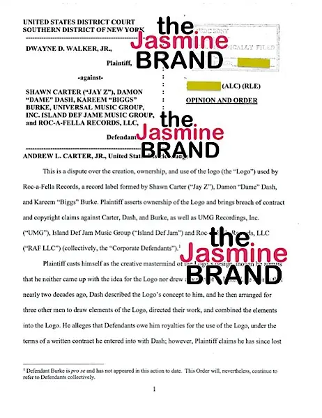 Here’s the backstory: A man named Dwayne Walker filed a federal lawsuit against Jay Z and Damon Dash, claiming he created the Roc-A-Fella logo and was owed $7 million dollars in royalties for his design.