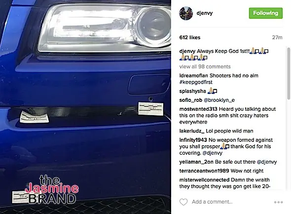 Today, Envy explained that the reason he supports Stop & Frisk, when done properly, is because last week in NYC, someone shot at his car, hitting his vehicle three times, in attempt to car jack him. The incident happened while he was on his way to work, from New Jersey. A car, appearing to be a police car, pulled up behind him attempting to pull him over. Envy says that the police lights didn’t look official, so he says that he decided NOT to pull over. The car then chased him, hitting the back of his car. He stopped on the highway, driving in reverse. The attempted car jackers got out the car and shot at him in his vehicle.