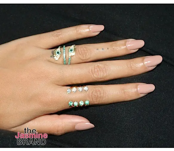And for those who are obsessed with accessories, Bey shared a close-up of her gold and green rings.
