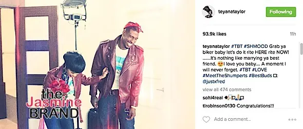Teyana Taylor has revealed her the first wedding photo of her and Iman Shumpert. On #ThrowbackThursday the singer revealed a pic of her and the NBA baller, laughing wearing biker jackets with Teyana holding a bouquet of flowers. Teyana shared the photo writing: