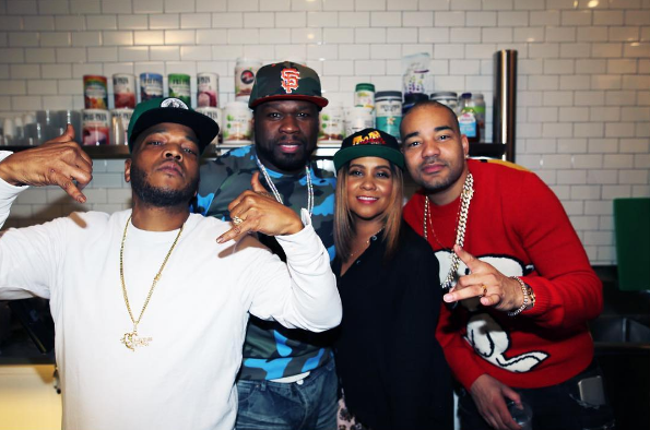 Styles P and 50 Cent helped radio personalities Angela Yee and DJ Envy celebrate their new Juices For Life store in Brooklyn.