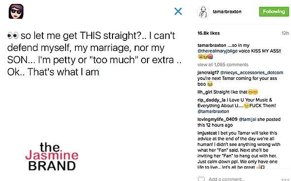 Tamar later posted the following on Instagram about defending her son and marriage.