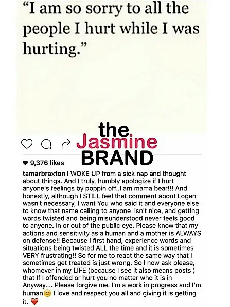 Tamar Braxton has issued an apology after lashing out at a fan who suggested her son needs speech therapy. Last night, Tamar posted a cute video of her son Logan and husband Vincent. Check it out below.