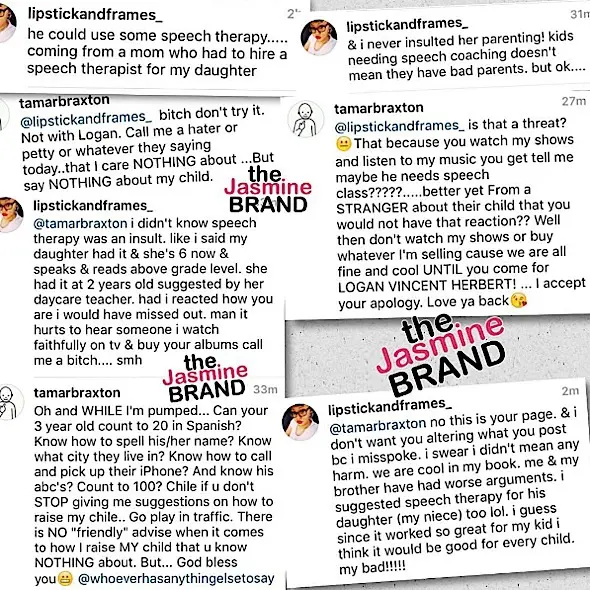 Telling someone that their child needs speech threapy is an insult to me. I listened to the video and didn’t seean issue with Logan’s speech. While I wouldn’t have called the women a “Bitch”, I still would have gotten offended and reacted offensively. Suggesting anything of a sort I can see coming from a close friend or loved one, but not a stranger. This person clearly didn’t think of how it could have been taken by Tamar, I mean if you watch her you had to know she wasn’t going to take that positively. She did not overreact except for the nme calling.