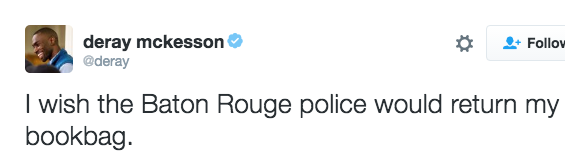 Mckesson was arrested during the July 9 protest on a charge of obstructing a highway. He filed a lawsuit in response; claiming police unlawfully arrested him and dozens of other protesters.
