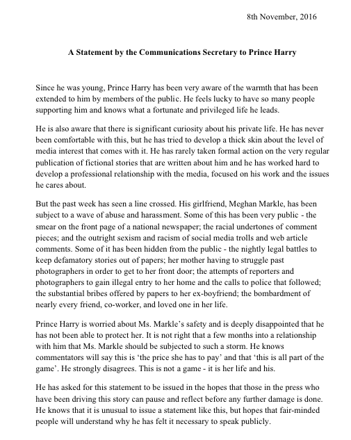 The prince feels that the “racial undertones” of press coverage about his girlfriend is unfair.