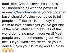 A few animal lovers slammed French on his Instagram. Check out their reactions below.