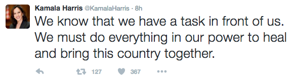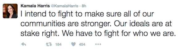 Congrats to Kamala Harris! On election night, the 52-year-old politician became the second black woman and first Indian American to be elected to the U.S. Senate. After winning, she took to Twitter: