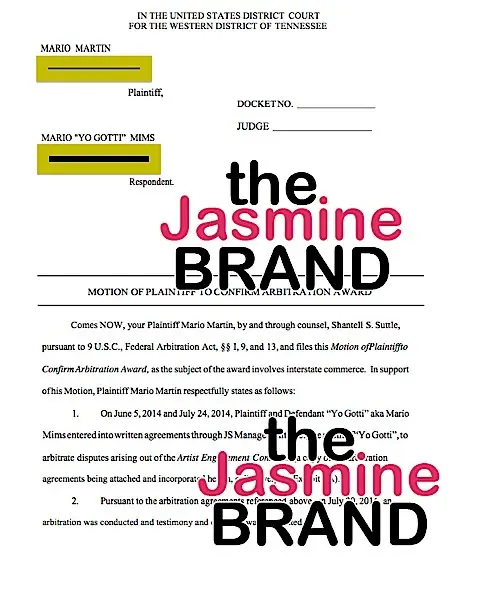Here’s the latest: On November 9th, Martin headed to Federal Court and filed a motion to confirm the arbitration award against Gotti, which is the first step to collecting the money he is owed by the rapper.